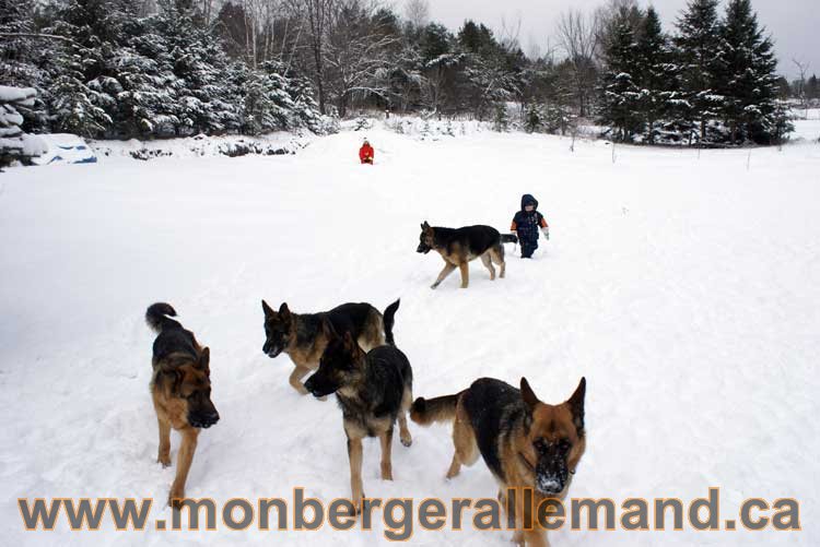 Nos mamans en gestation et chiots sont élevés dans notre maison jusqu'a l'âge de 8 semaines, avec nous et nos enfants (2 ans et 11ans), bien que chaque chiot ai sont propre caractère tout nos chiots seront de merveilleux compagnon pour n'importe quel enfant ou pour votre famille. Nos bergers allemand vous protègerons d'instinct si vous êtes menacé, il protègerons aussi d'instinct votre maison ou son territoire, bien élevé, vous aurez un gardien incorruptible qui risquera sa vie sans hésiter pour vous protéger! Certain ont d'autre passion pour ces chiens qui sont des chiens idéal pour le schutzhund, le ring , l'agilité, protection, sauvetage ou autre sport canin ou chien policier, nous avons des chiens berger allemand idéale pour cela!
