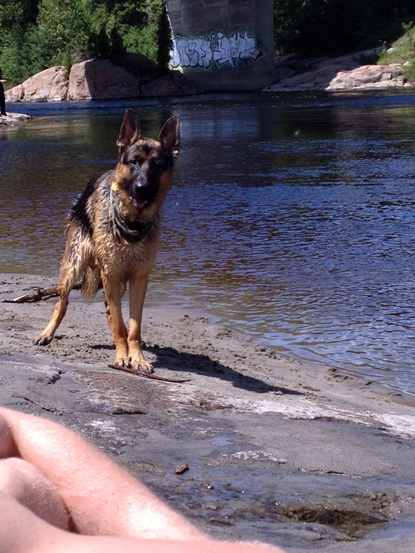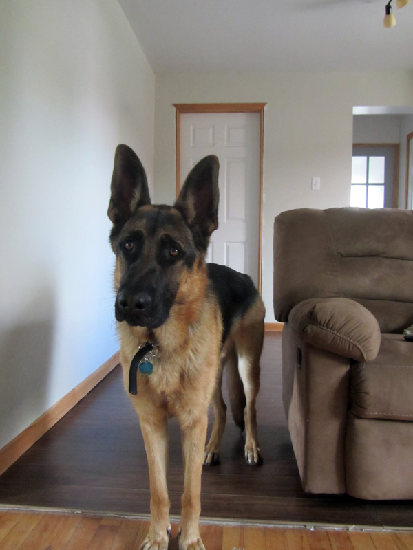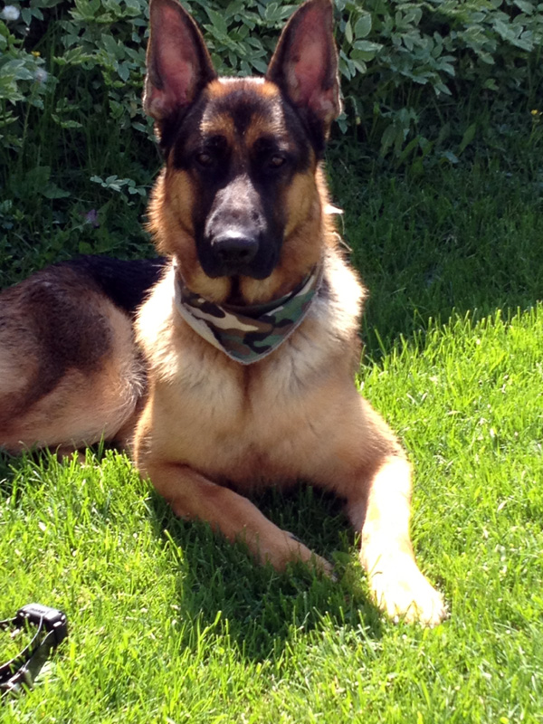 Commentaire du Maitre :  Bonjour!! :) Puisque j'étais sur un cell quand j'ai envoyé les photos, je ne vous ai pas dit comment Panzer était le chien de nos rêves! Il nous suit toujours partout, il fait les plus beaux calins du monde! (Pour de vrai) :P Il est d'un naturel soumis au niveau des humains. Nous l'aimons beaucoup! Et la description que vous avez faites de lui lorsqu'il était bébé était parfaite. On l'adore! :) Merci mille fois! xxxx Et désolé pour Big. Ce doit être terrible la peine que vous avez eu...
